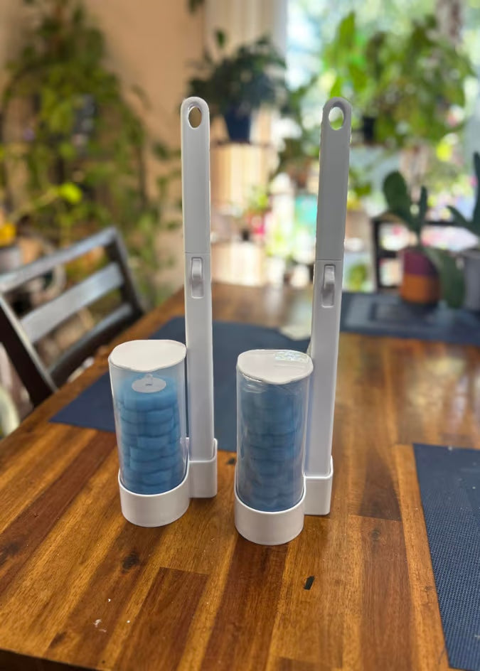 Meglepően hatékony kis szett! Összerakni pár másodperc, a fej felpattintása gyerekjáték. A szivacs azonnal habzik, ahogy víz éri és rengeteg tisztítószer van benne, finom illattal. A WC hófehér lett, és simán kétszer végig tudtam vele menni a csészén és a peremen is.